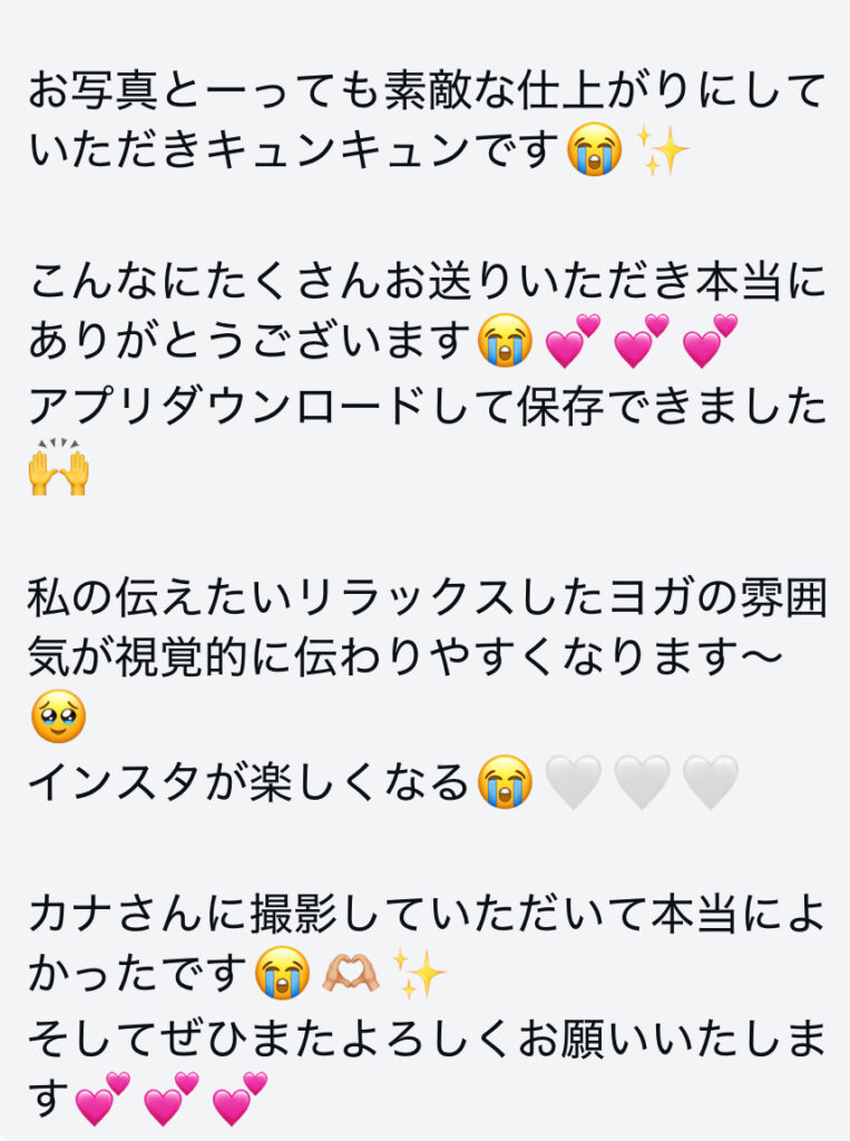 ヨガインストラクター 仙台市 Yさん 撮影アルバム 2025年7月31日2025年10月21日yoga / pilates 呼吸とともに私に還る時間を表現したアルバムです。 仙台で活動するYさんが、岩手に来てブランディングセッションを受けてくださいました。 素材があると、SNSの発信もスムーズになるし言葉も降りてきやすいですよね。 伝えたいことがまっすぐに自分の姿と共に伝えたい方へ届きますように。しっかりとヒアリングからそのお手伝いをさせてもらっています。 東京都と岩手県を拠点に、全国出張しているフォトグラファー one. のHPへようこそ。 カメラマンとして日々切り取る一瞬に想いを乗せて発信しています。 インスタグラムhttps://www.instagram.com/kana.s.0000/